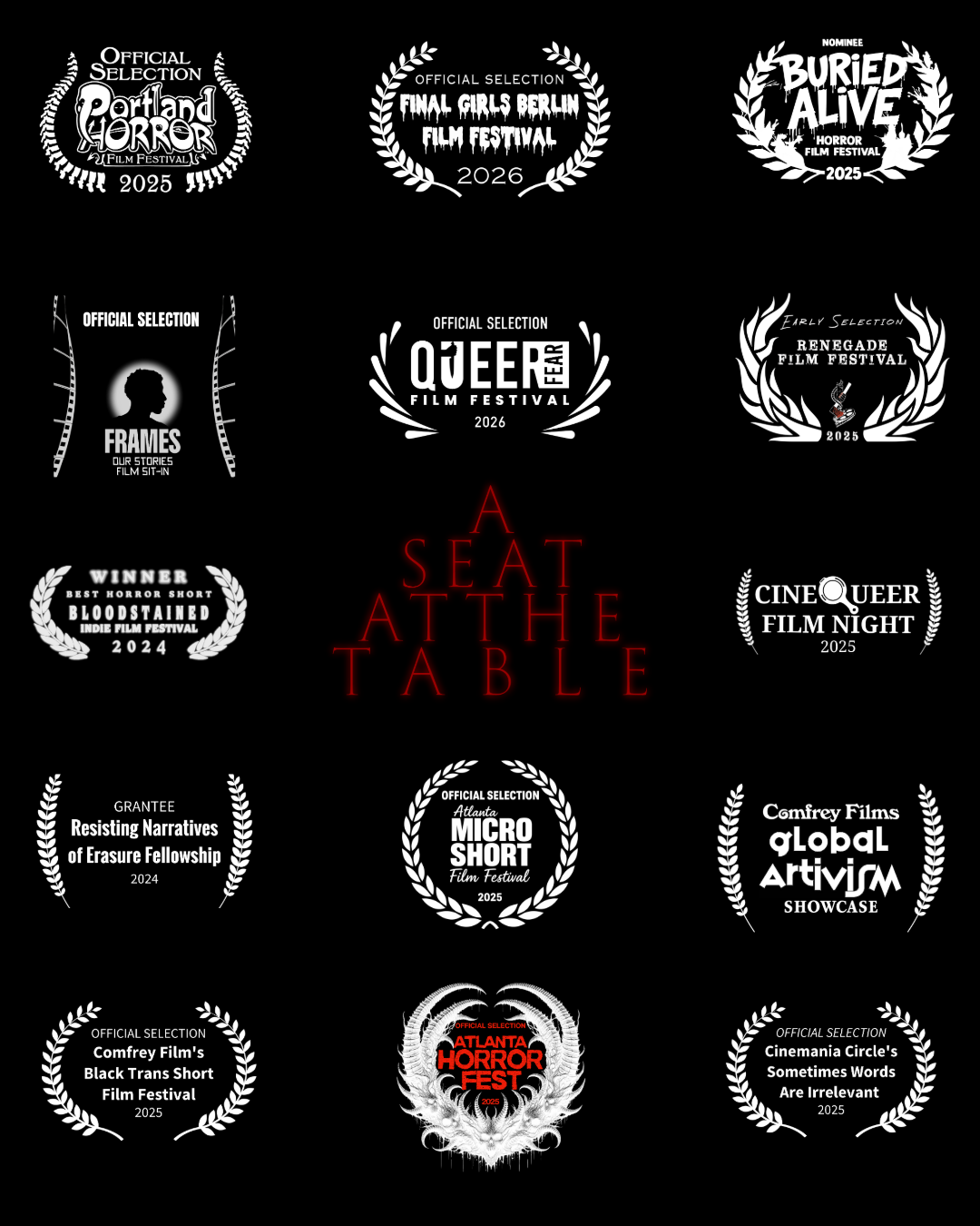 A Seat at the Table is a horror about an unsuspecting prospect who must overcome the gruesome tasks of an elite group in order to gain the treasures of their higher power.