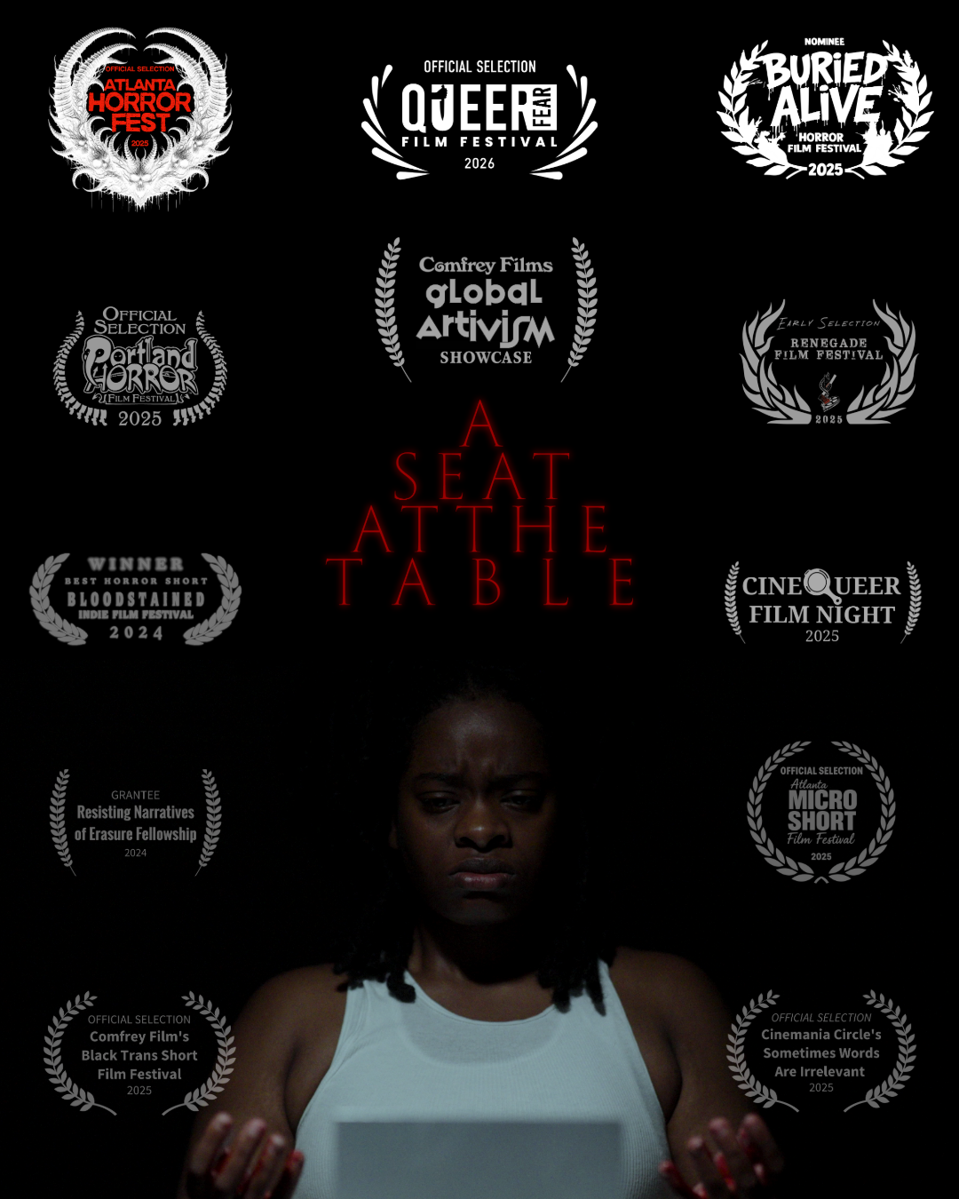 A Seat at the Table is a horror about an unsuspecting prospect who must overcome the gruesome tasks of an elite group in order to gain the treasures of their higher power.